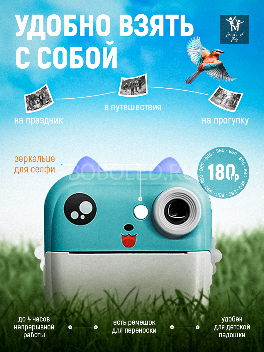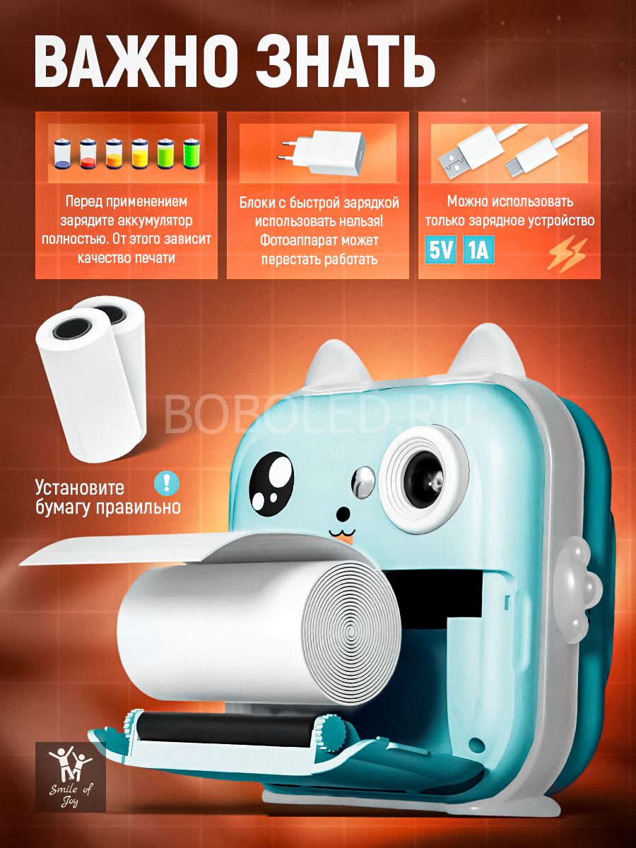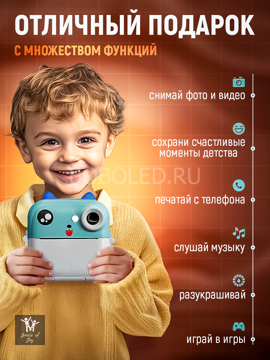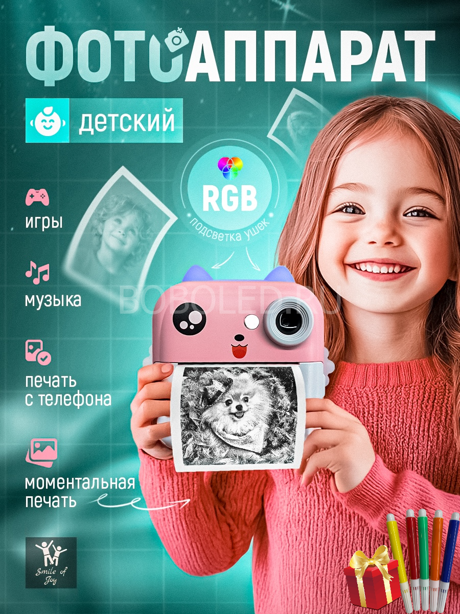 Хотите порадовать ребенка не просто игрушкой, а целым миром творчества и развлечений? Детский мини фотоаппарат мгновенной печати PRINT CAMERA - это компактная цифровая камера с термопечатью, функцией видеосъемки, MP3 плеером, RGB подсветкой и встроенными играми. Этот мини-фотик с милыми ушками в виде котика выполнен в ярком бирюзовом цвете, который обязательно понравится девочкам и мальчикам.