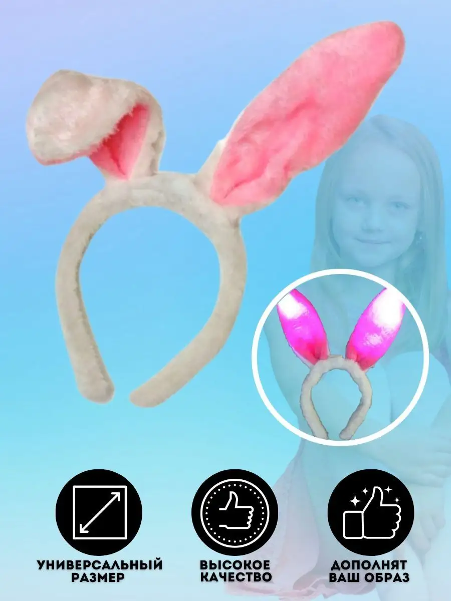 Ободок "Уши зайца" карнавальный, светящийся. Стильный, милый и безумно забавный карнавальный аксессуар. Подойдёт для продажи на дне города, на набережных, центральных площадях и др местах скопления людей! Благодаря встроенным светодиодным лампочкам, ушки мигают и переливаются ярким светом.